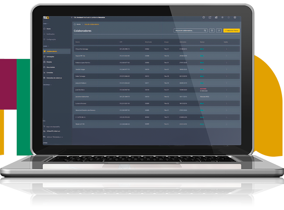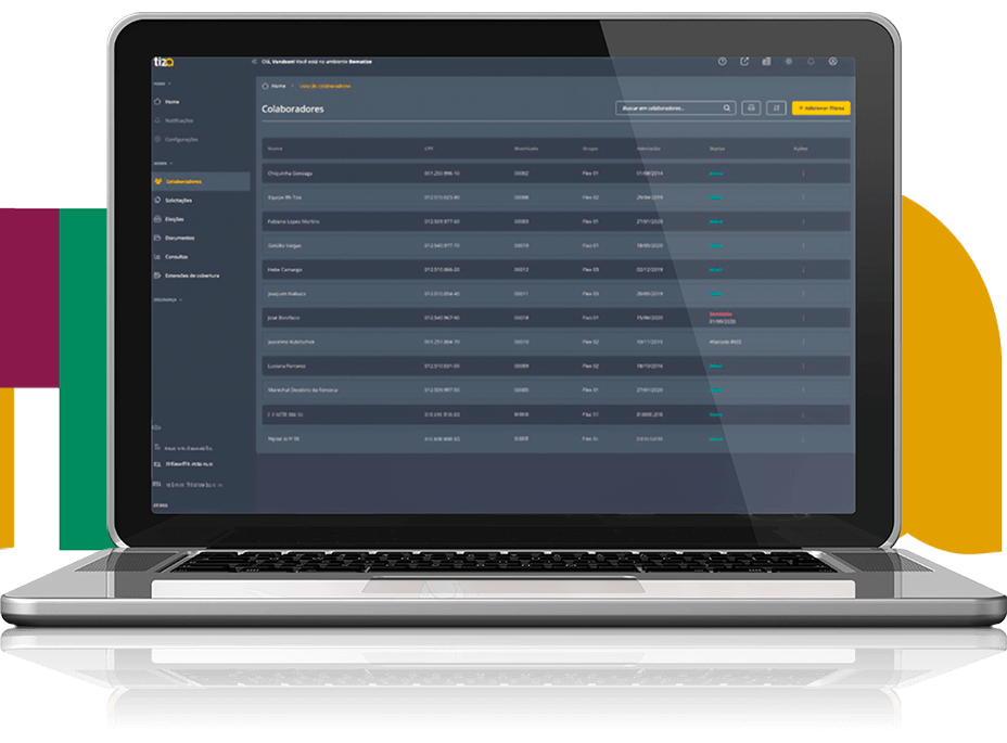 Com a Tiza você controla, em tempo real, todas as informações dos colaboradores e dependentes, com agilidade e segurança.