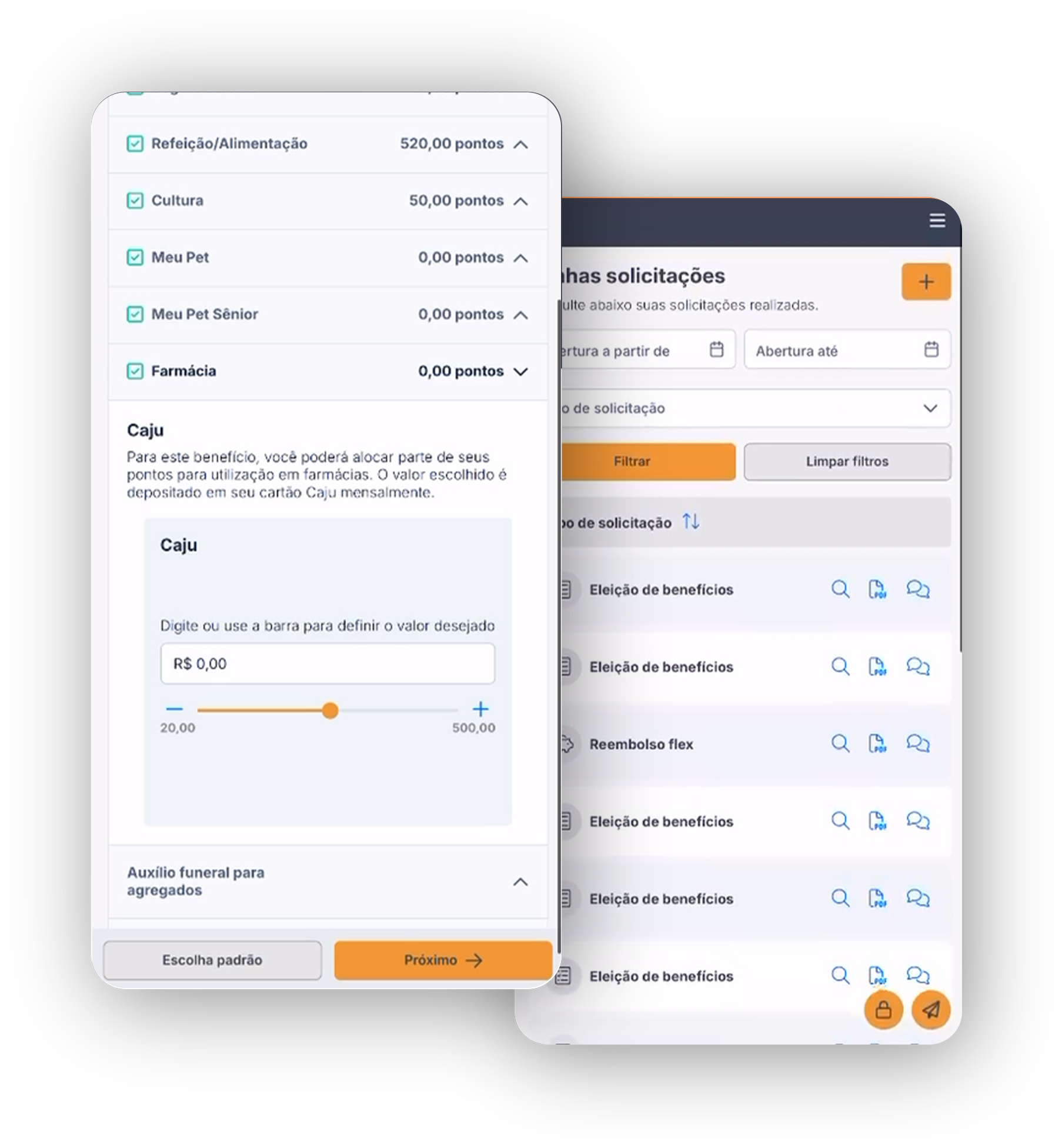 Solicitações de benefícios direto na plataforma, com rastreabilidade, agilidade e zero papelada.